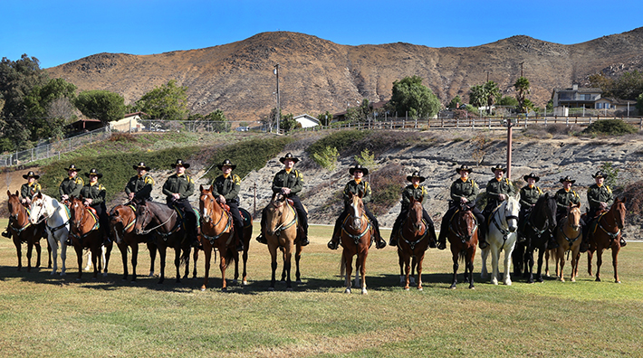 The Mounted Enforcement Unit (MEU) is an integral part of Sheriff's Operations offering high profile patrol to the parks, beaches and special events throughout Orange County. Deputies on horseback reemerged some 35 years ago when some enterprising sheriff's deputies commandeered a string of rental horses at Irvine Park to address an unruly crowd that had gathered. The department recognized the effectiveness of this force multiplier and organized an official Mounted Unit. A barn was raised on a five acre section of the James A. Musick Facility, and the Orange County equestrian community responded by donating the first police horses to the Department's new Mounted Unit.
